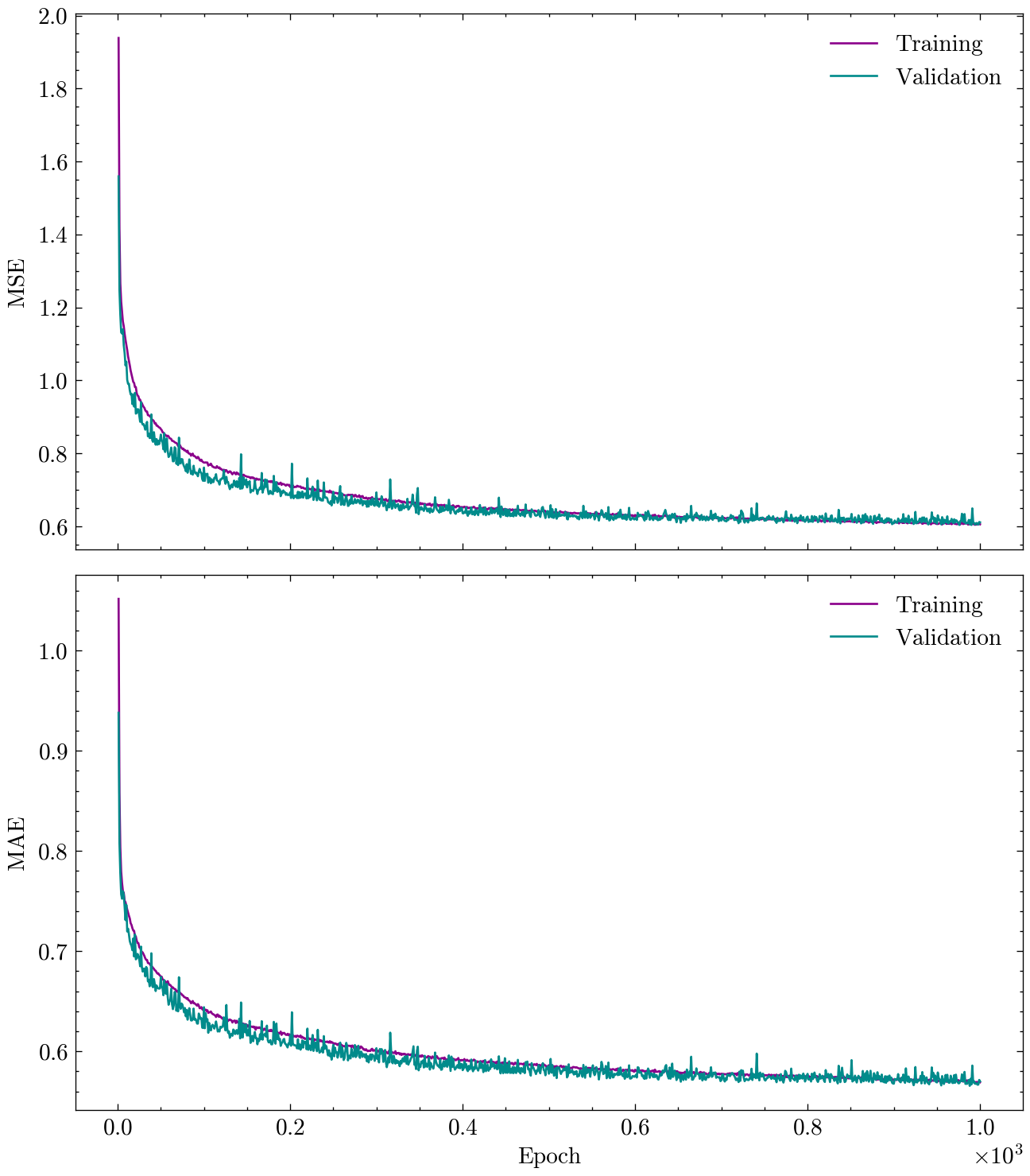 Epoch 1000 ; Training: Loss = 0.5834 Metric = 0.5599 ; Validation: Loss = 0.5727 Metric = 0.5569