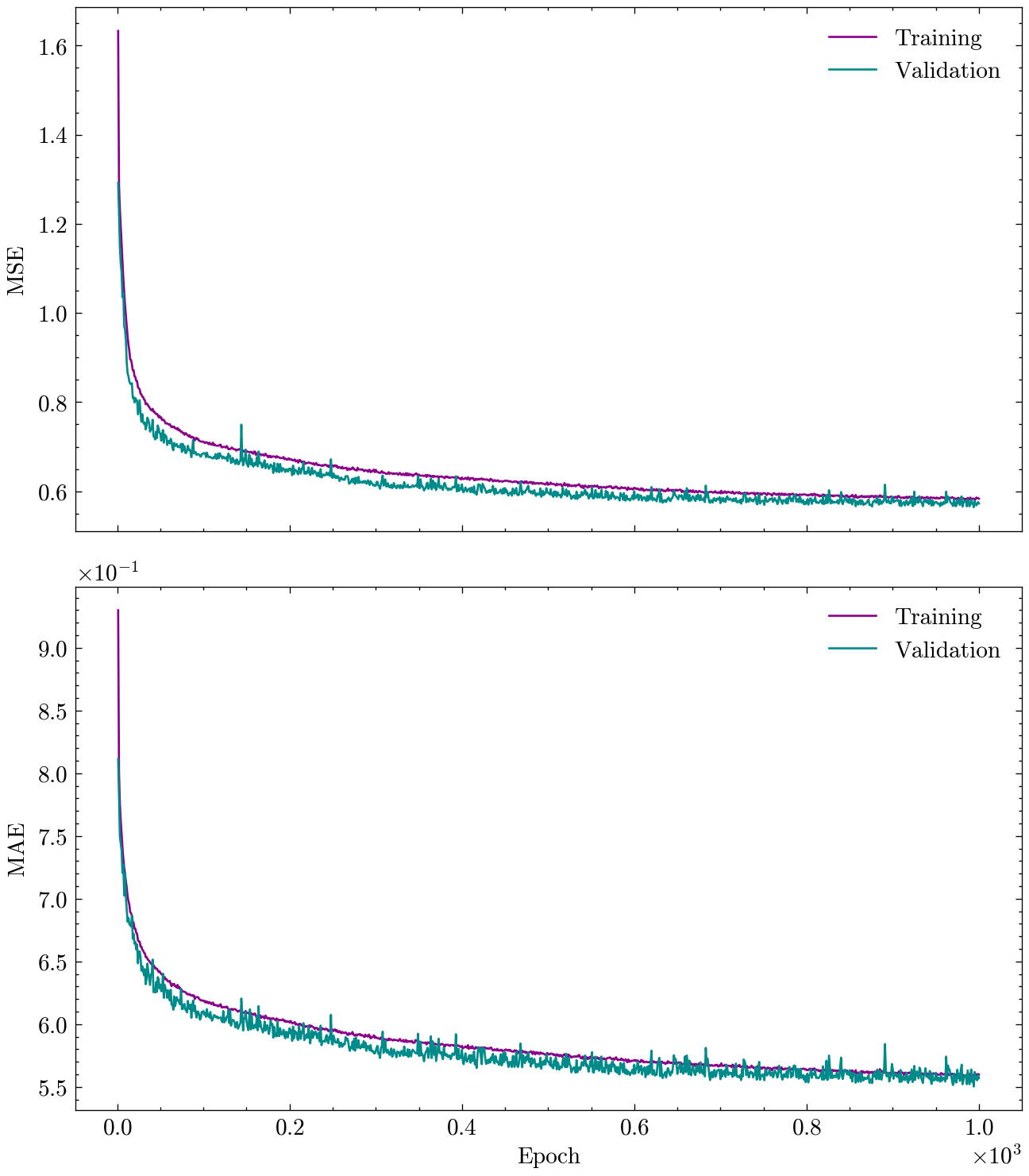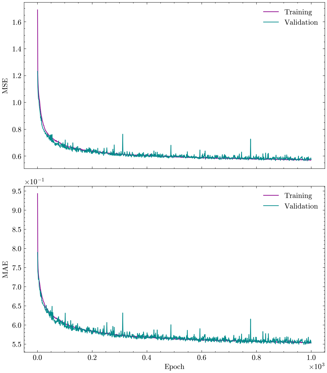 Epoch 1000 ; Training: Loss = 0.5834 Metric = 0.5599 ; Validation: Loss = 0.5727 Metric = 0.5569